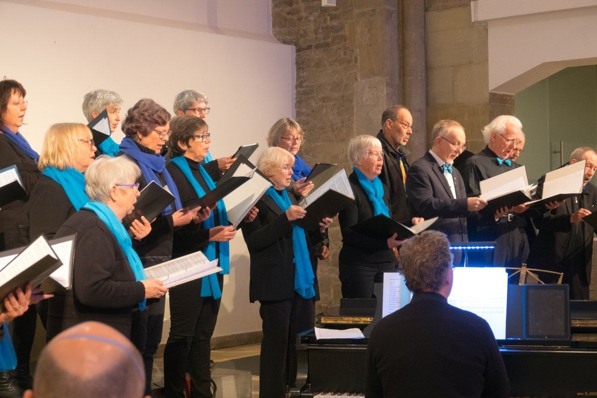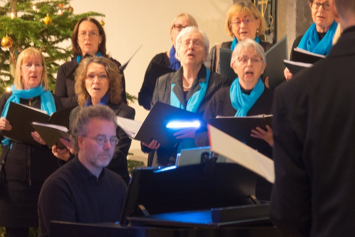 Nach 2 Jahren Corona-Pause freut sich der Singkreis Kupferdreh, endlich wieder an der alljährlich stattfindenden, vorweihnachtlichen Veranstaltung des Essener Sängerkreises teilnehmen zu können. Für eine besondere Stimmung sorgen das blaue Licht des gläsernen Anbaus, das im Innern der Kirche eine fast unwirkliche Atmosphäre schafft, die beiden großen afrikanischen Krippenboote und natürlich die weihnachtliche Musik. Und so boten wir ein abwechslungsreiches Programm internationaler Weihnachtslieder von Christmas-Calypso bis Tochter Zion. Insgesamt ein stimmungsvoller Auftritt, der in starkem Kontrast zu dem Weihnachtsmarkttrubel außerhalb der Marktkirche stand. Und für den Singkreis ein gelungener Abschluss des Jahres 2022.